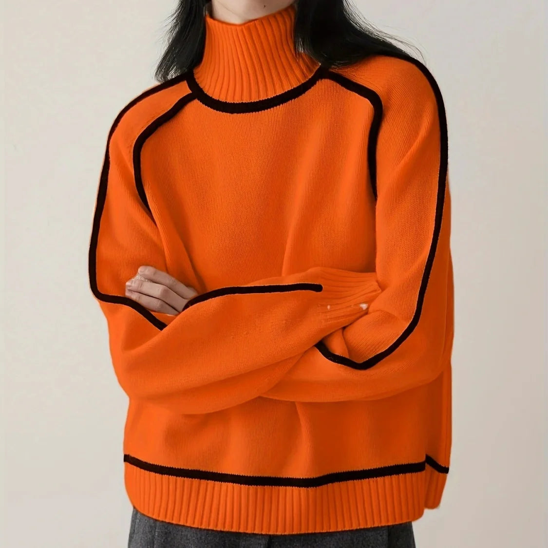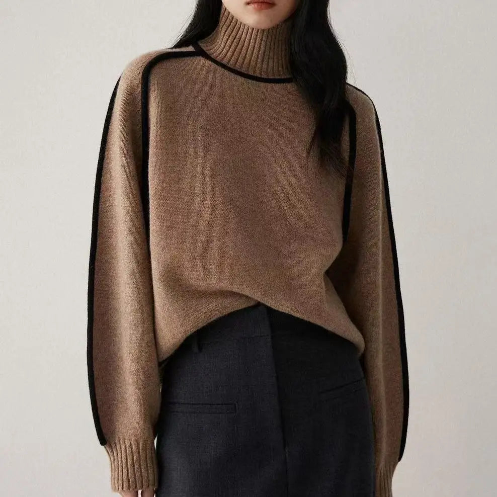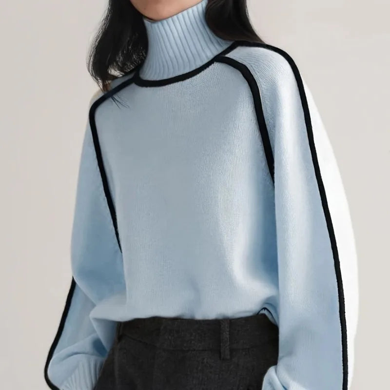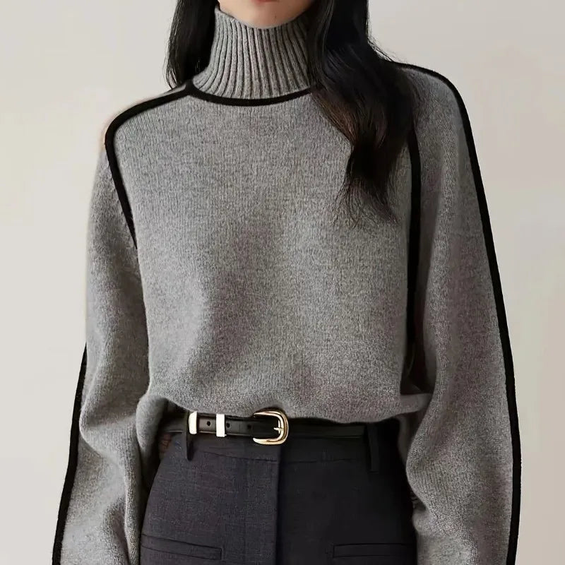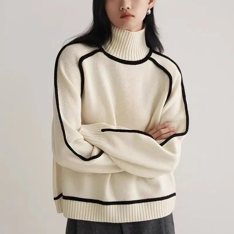 • Stijlvol contrast: De subtiele zwarte bies langs de naden geeft de trui een verfijnde, moderne touch.